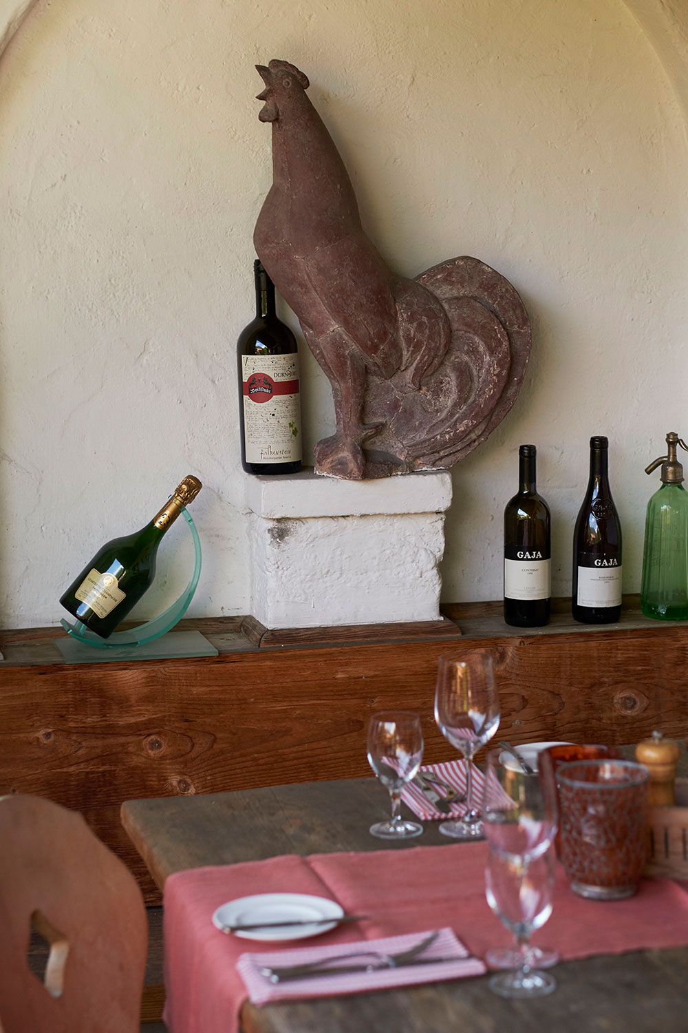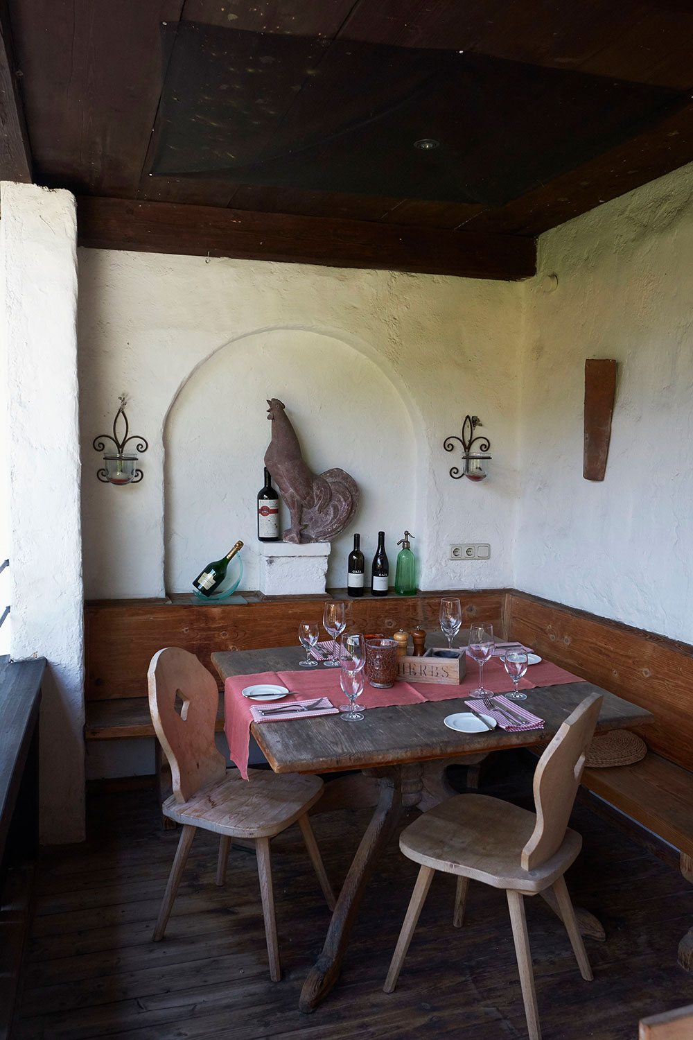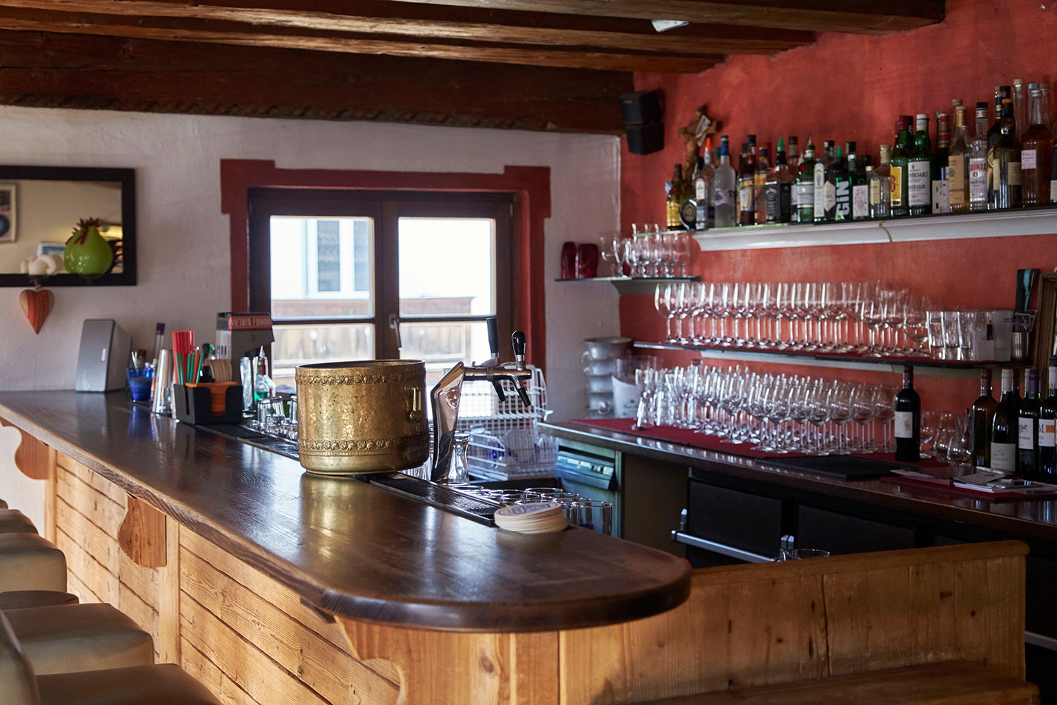 Unseren Gästen bieten wir alpenländisch-mediterrane Gerichte – von der Südtiroler Speckplatte bis hin zum Meeresfisch in Salzkruste. Dazu servieren wir ausgewählte Weine, Augustiner und Erdinger Bier aber auch Cocktails – ich bin schliesslich gelernter Barkeeper – sowie Softdrinks und Säfte.