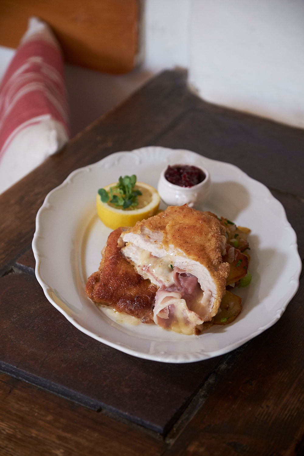 mit Kartoffelsalat und Preiselbeeren